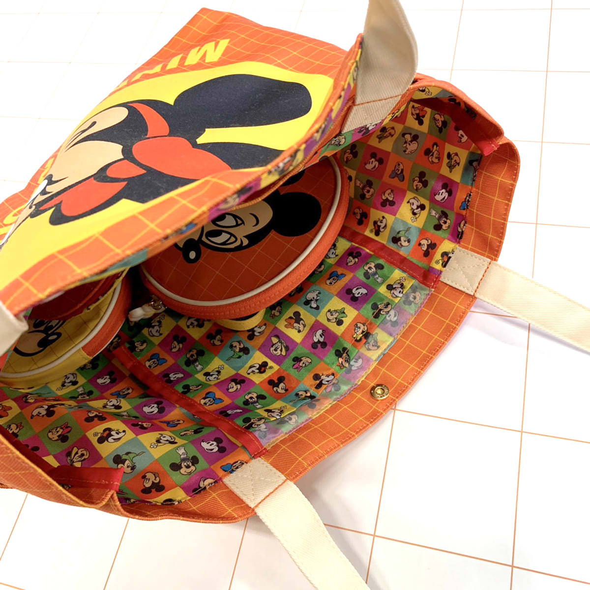 また「ミッキーマウス」「ミニーマウス」スクリーンデビュー90周年を迎えたということで、バッグなどの内生地も今だけ特別の「ミッキーマウス」と「ミニーマウス」のカワイイデザインになっています。