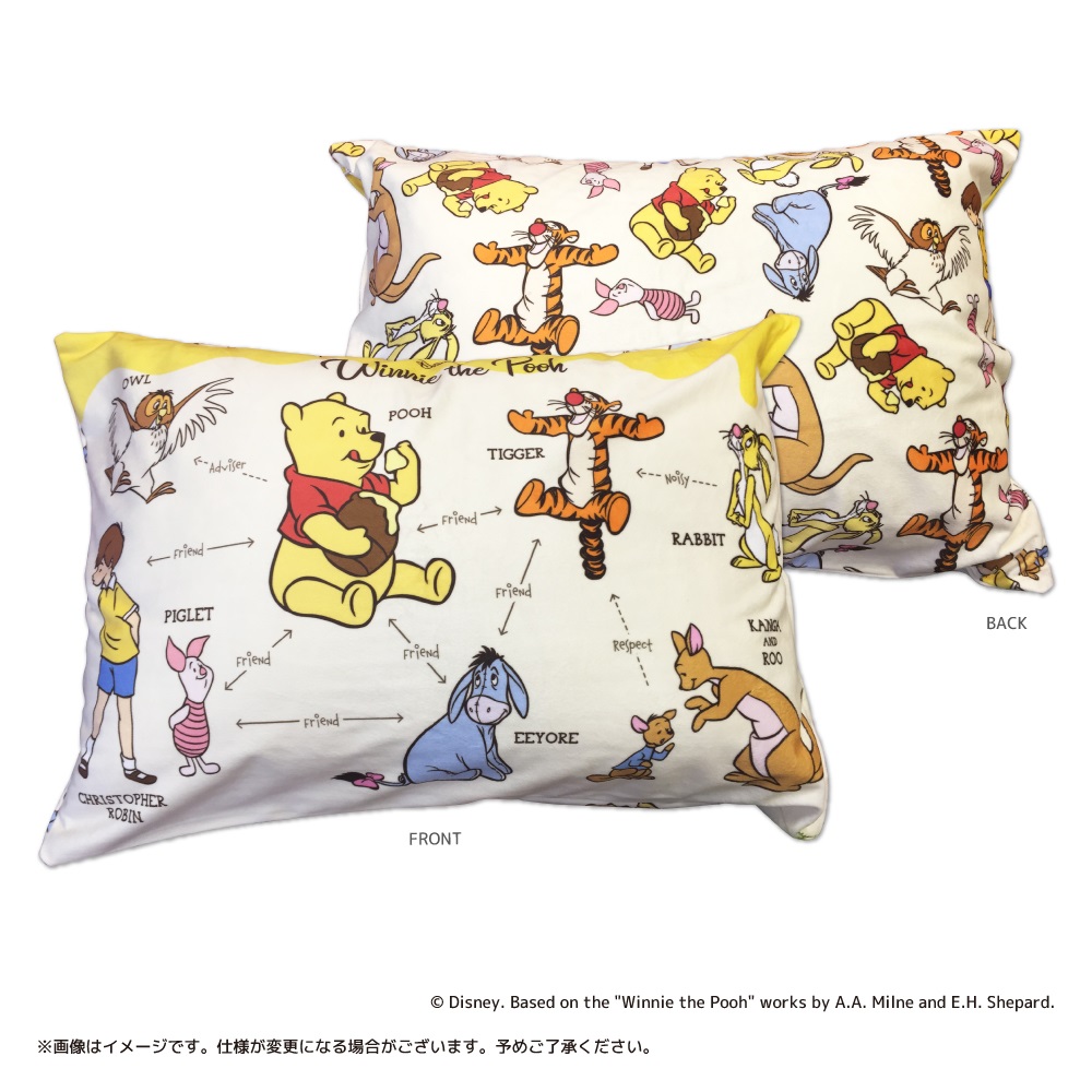 『くまのプーさん』に登場する100エーカーの森の仲間たちがデザインされた枕カバー。