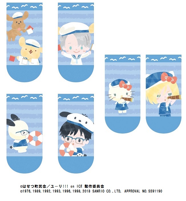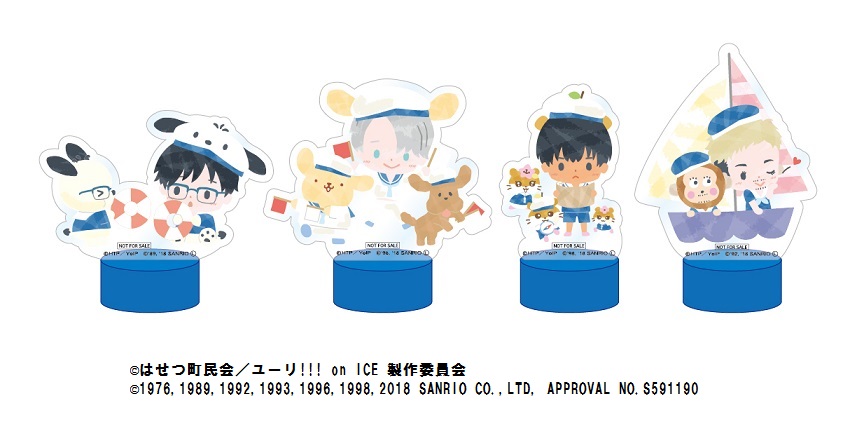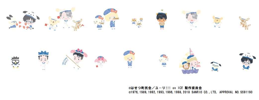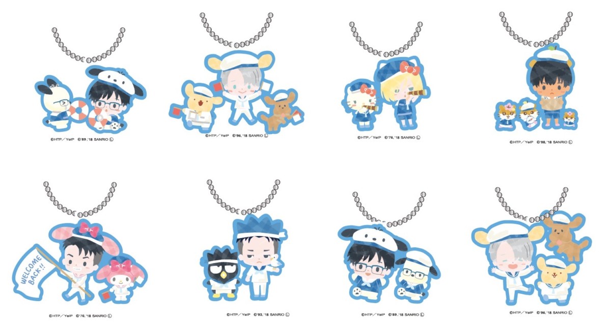 「勝生勇利×ポチャッコ」2種、「ヴィクトル・ニキフォロフ×ポムポムプリン&マッカチン」2種、「ユーリ・プリセツキー×ハローキティ」、「ピチット・チュラノン×コロコロクリリン」、「ジャン・ジャック・ルロワ×マイメロディ」、「オタベック・アルティン×バッドばつ丸」の全8種展開☆