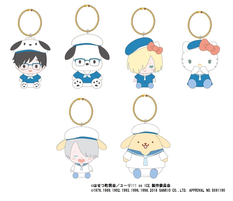 ラインナップは、「勝生勇利」「ポチャッコ」「ユーリ・プリセツキー」「ハローキティ」「ヴィクトル・ニキフォロフ」「ポムポムプリン」の6種類☆