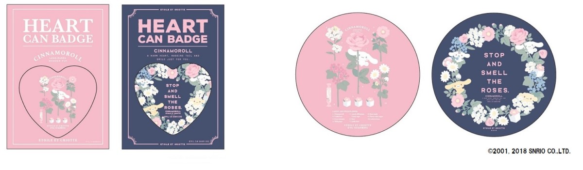コラボアートが施された缶バッジと缶ミラーはそれぞれ2種類ずつラインナップ。