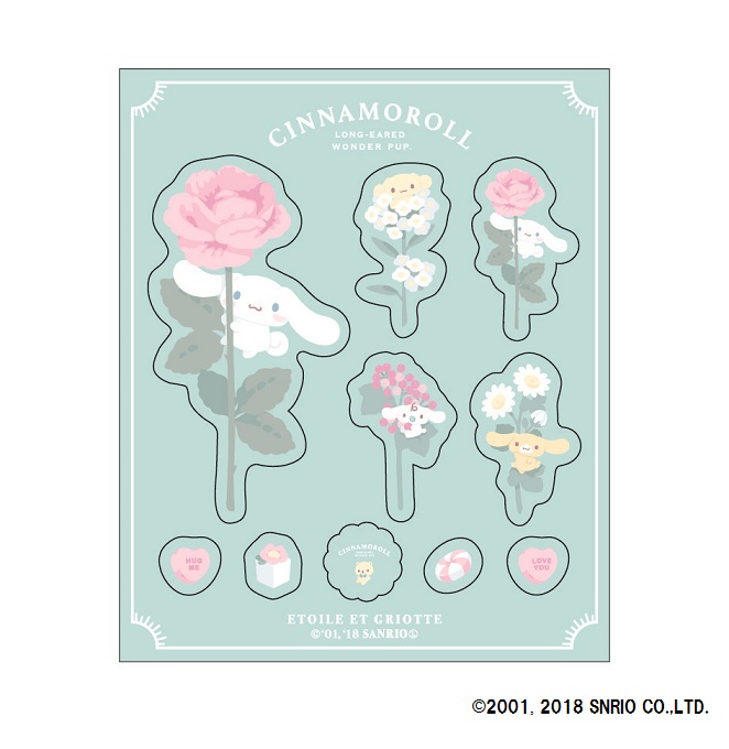 「シナモロール」や「みるく」「カプチーノ」などの人気キャラクターがダイカットにアレンジされたシール。