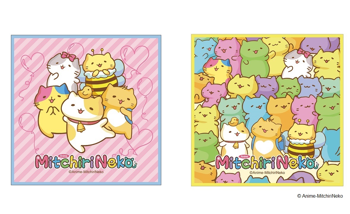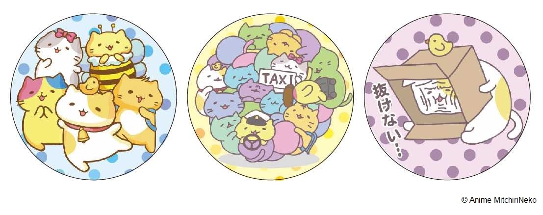 「ミッチー」、「ぴよぴよ」、「カラフル」、「ハニー」、「リボン」のデザインと、みっちりねこが詰まった中に5匹が紛れているデザインの2種類です。