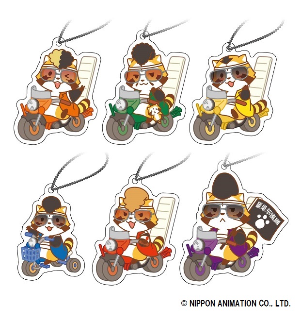 羅巣華流團メンバーそれぞれのデザインのアクリルキーホルダー。