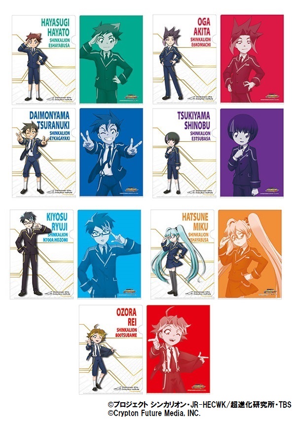 超進化研究所の制服を着たシンカリオンの運転士たちがデザインされた新商品。