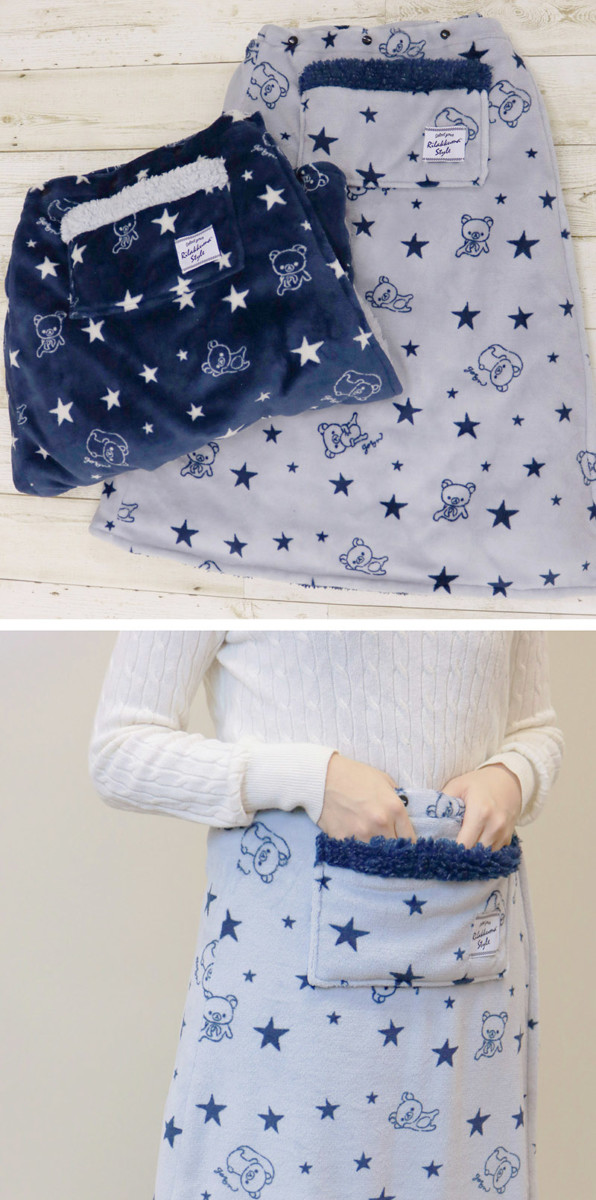 星柄リラックマデザインのWafil素材を使用した、防寒アイテム「ブランケットS・L」「腰巻ブランケット」「ルームシューズ」「フットインクッション」「ネックウォーマー」の紹介でした☆