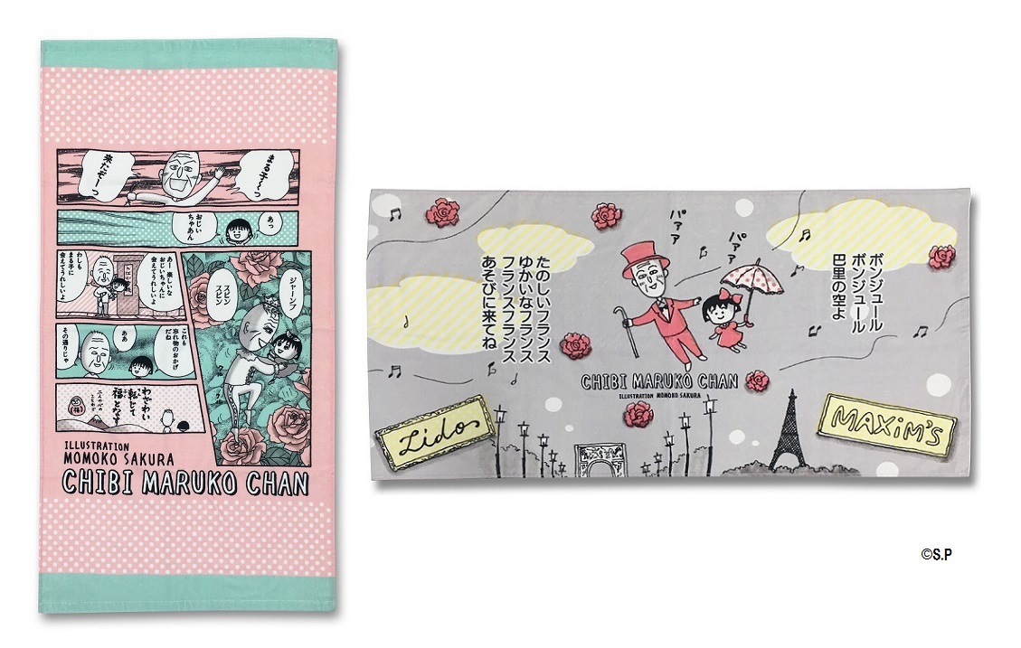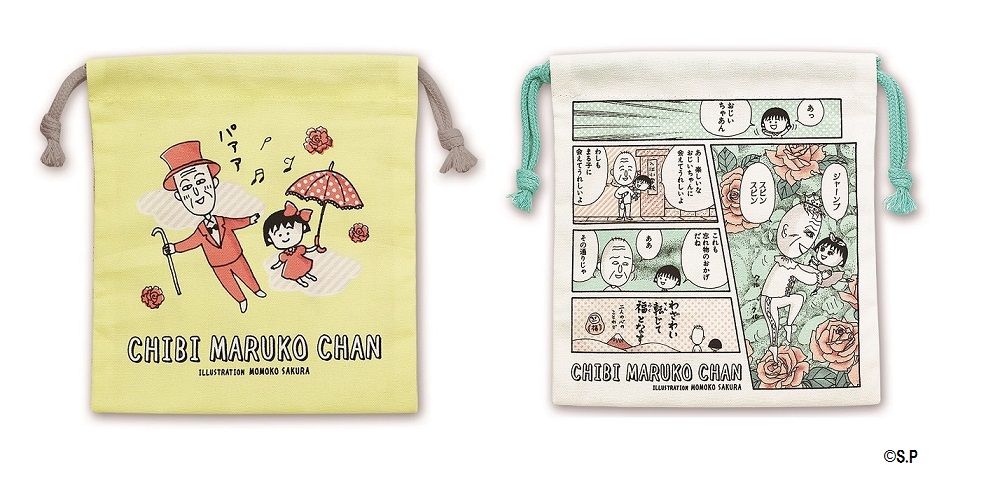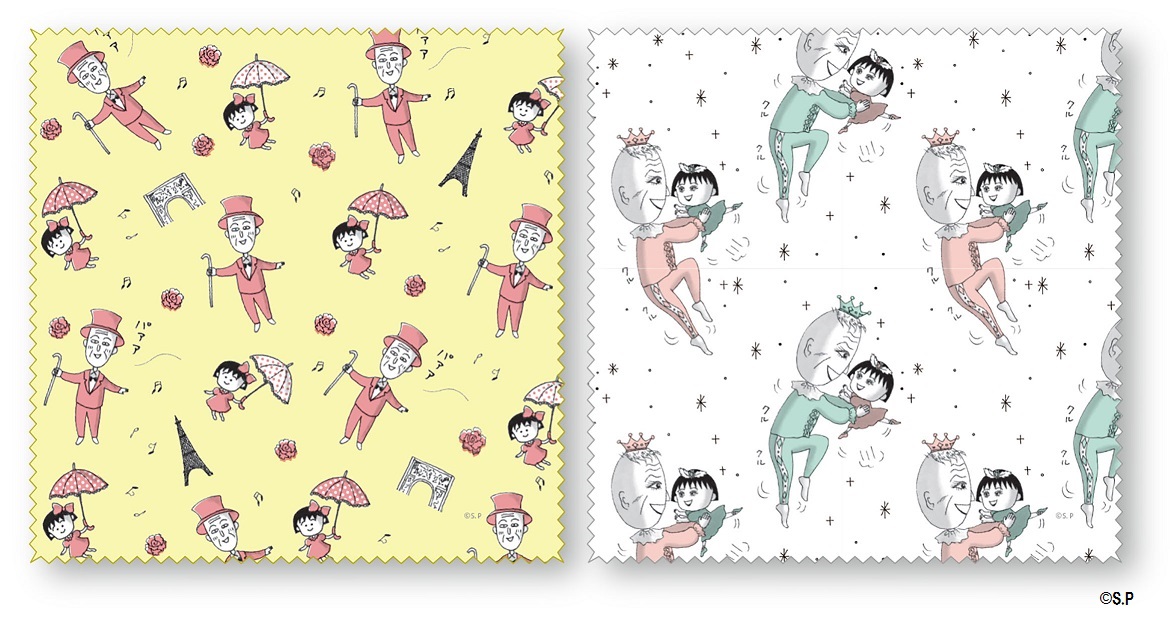 まる子とおじいちゃんがおめかしをしているデザインと、総柄の2種がラインナップ☆