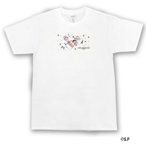 まる子とおじいちゃんのアートがデザインされたTシャツ。