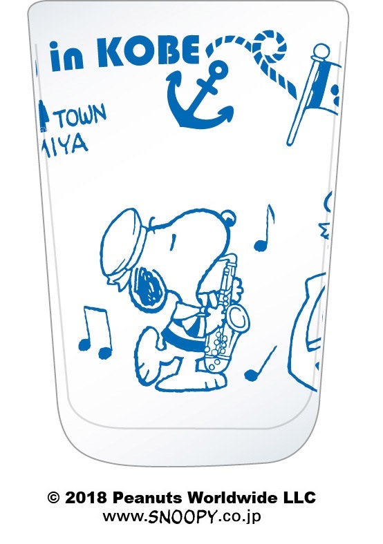 第2弾アイテムとして、スヌーピーがマリンスタイルでサックスを吹く姿がデザインされた非売品の「ちびグラス(神戸モチーフ柄)」がプレゼントされます☆