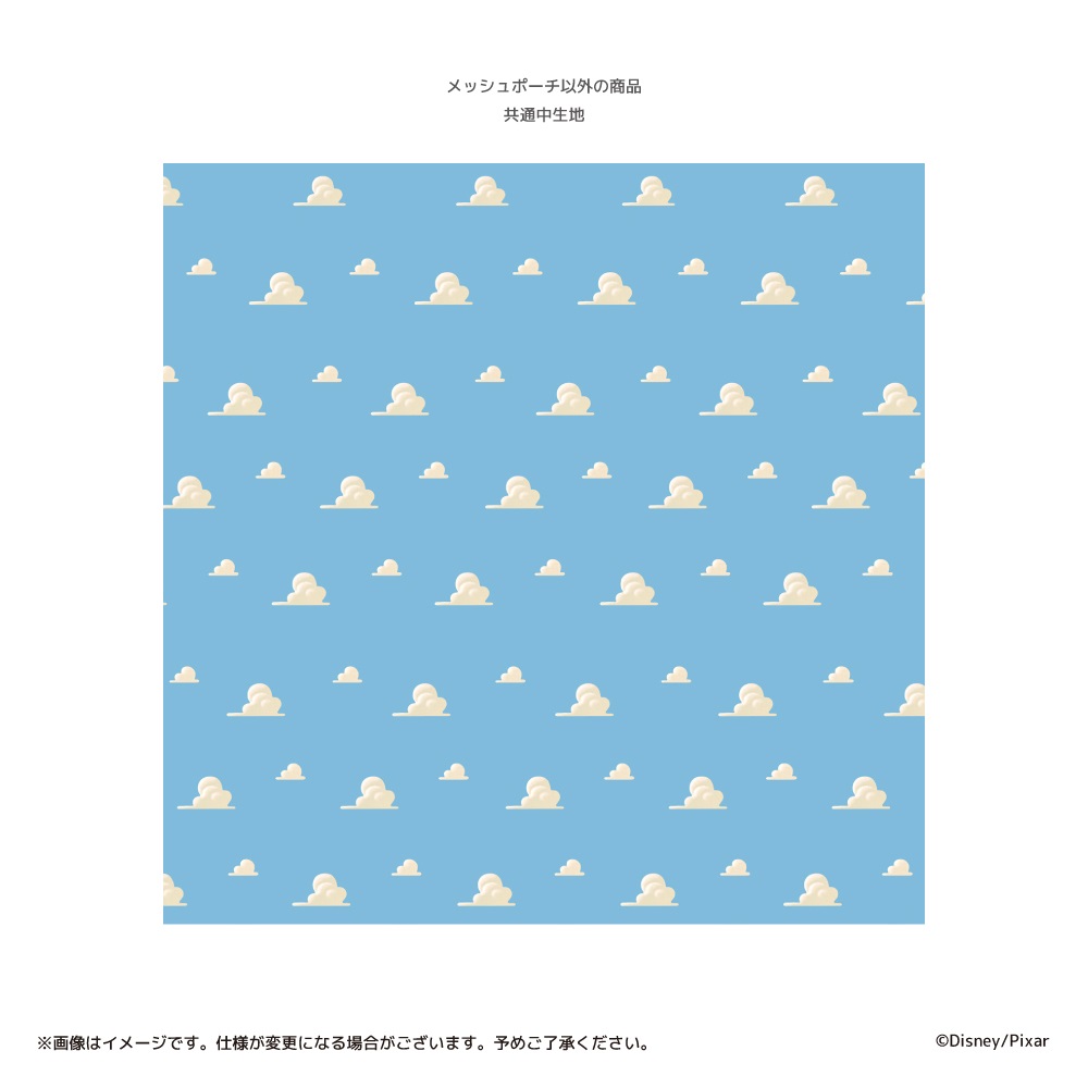 メッシュポーチ以外のアイテムはアンディのお部屋の壁紙をイメージさせる雲柄の中生地を使用しています。