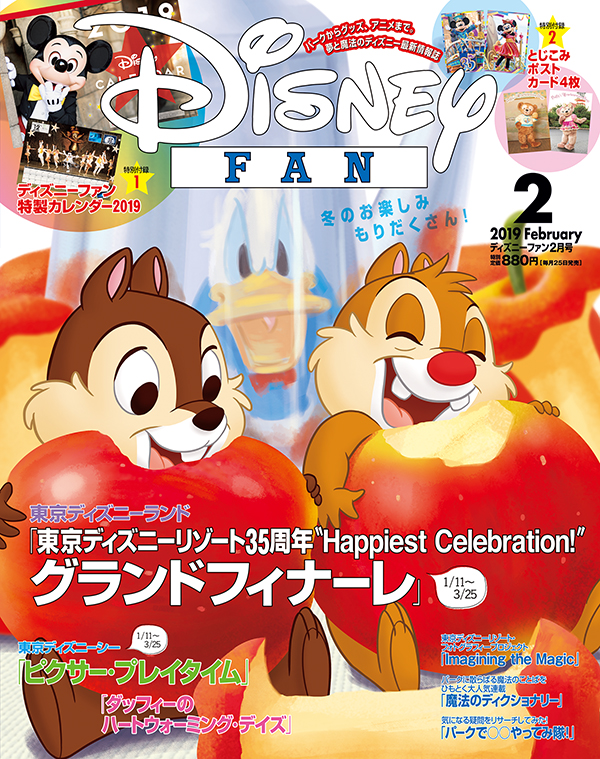 2018年12月25日発売の「ディズニーファン」は、『ディズニーファン 特製カレンダー 2019』が付録!