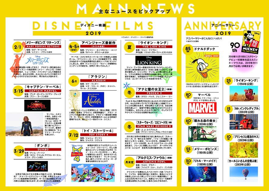 ディズニー映画、東京ディズニーランドと東京ディズニーシーの新アトラクションなどのスケジュールもたくさん記されています☆