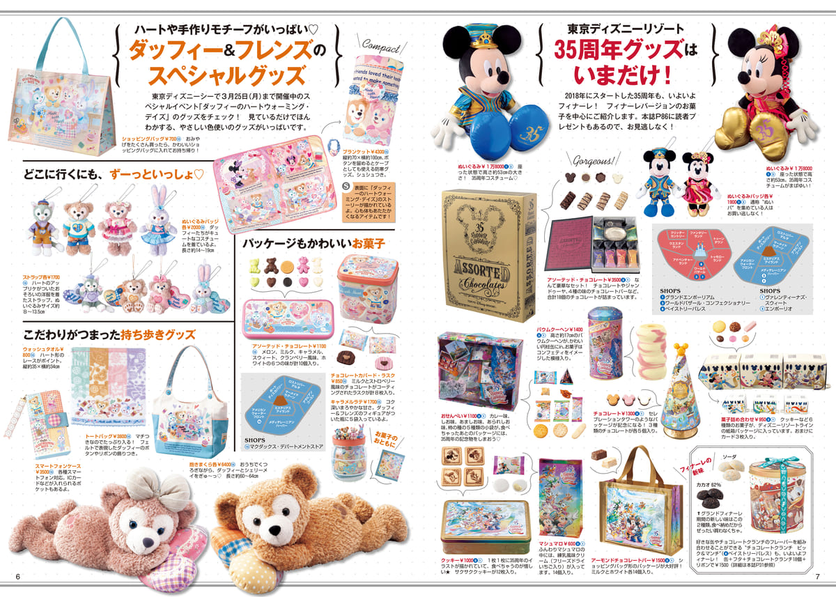 別冊付録には、東京ディズニーリゾート35周年グランドフィナーレグッズやダッフィー&フレンズ、「ピクサー・プレイタイム」まで盛りだくさんなグッズや春の新しいフードメニューなどの情報がコンパクトにまとめてあります☆