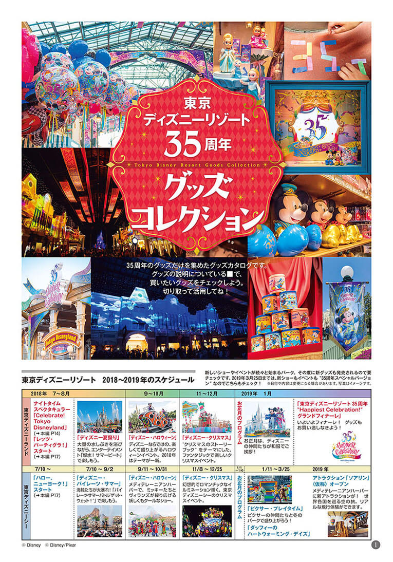 東京ディズニーリゾート35周年のアニバーサリーということで、今回は巻頭にとじこみで35周年のグッズ&イベント情報がすべてわかる別冊付録つき。