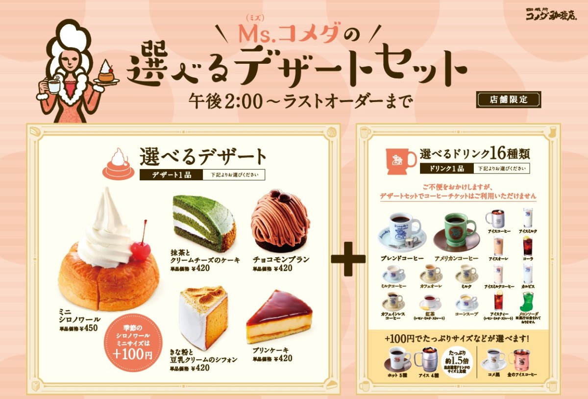 コメダ珈琲店から、デザートとドリンクが選べるお得なセットが登場!