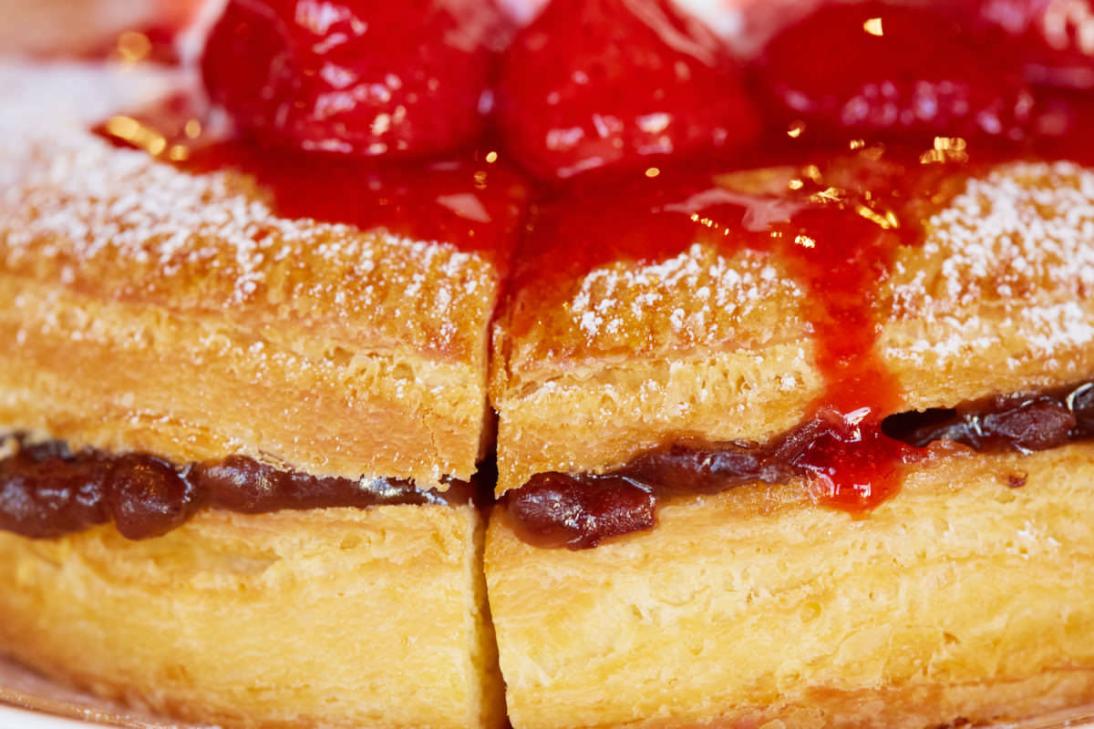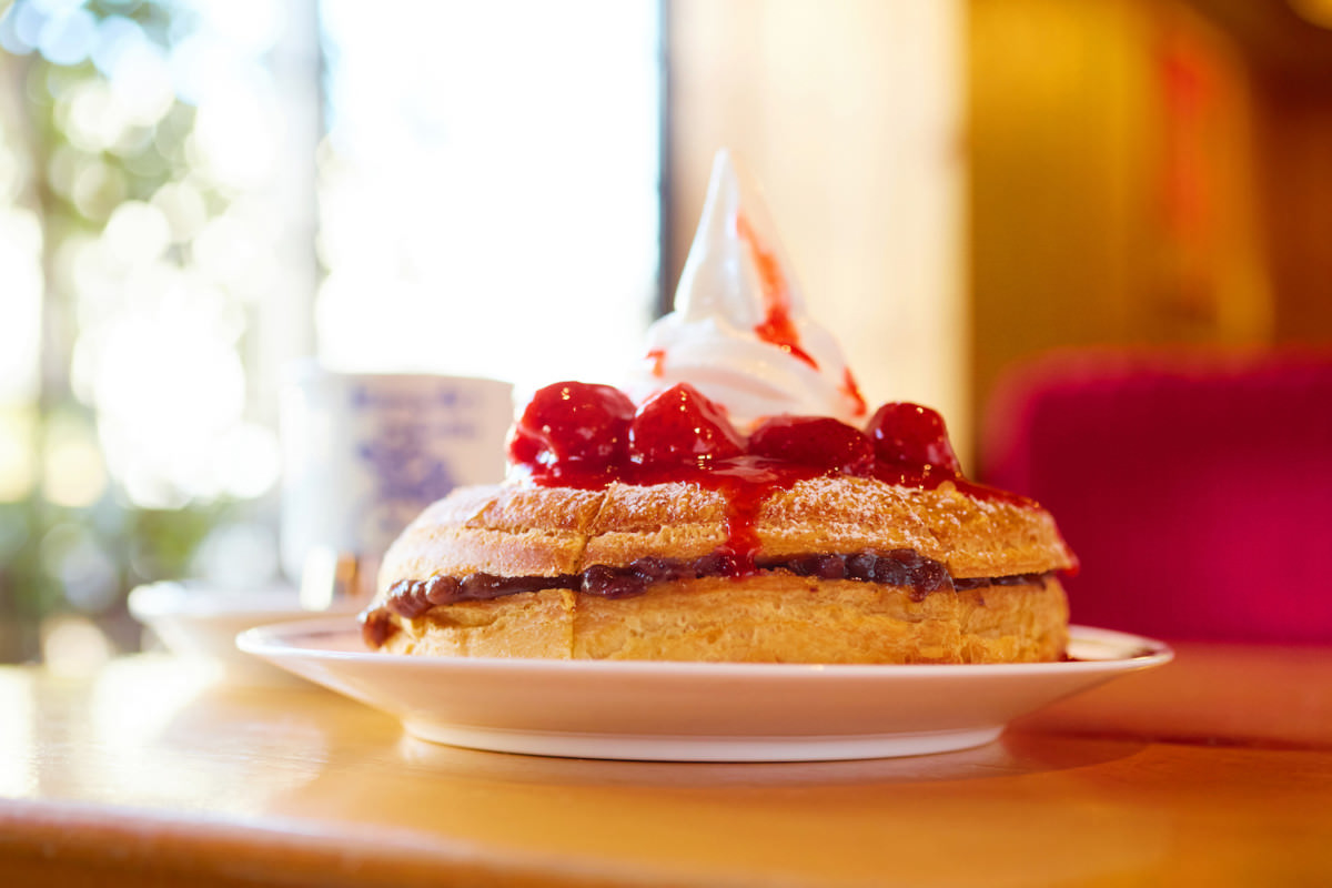 デニッシュとソフトクリーム、小倉にイチゴの酸味がアクセント!