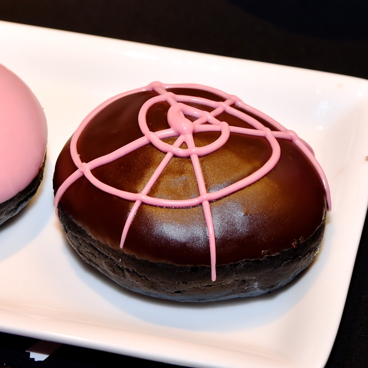 テーマカラーのピンクチョコでクモの巣がデザインされています。