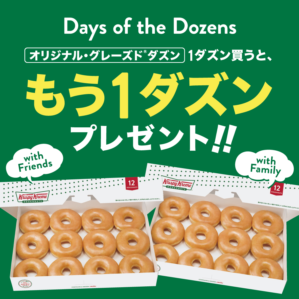 クリスピー・クリーム・ドーナツでは、毎年12月12日を「ダズン ボックス」の記念日として、「オリジナル・グレーズド®ダズン」を1ダズン買うと、もう1ダズン無料でもらえる「Days of the Dozens」キャンペーンを開催!