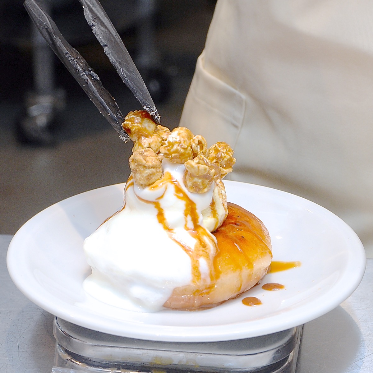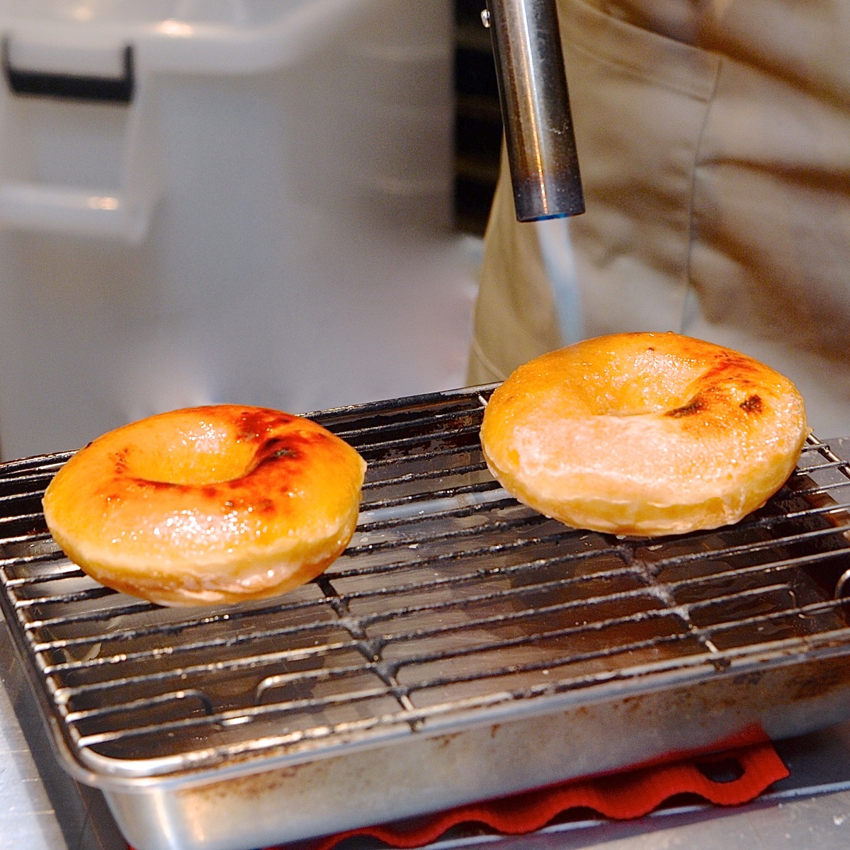注文ごとにドーナツの表面をカリッとブリュレしていきます。