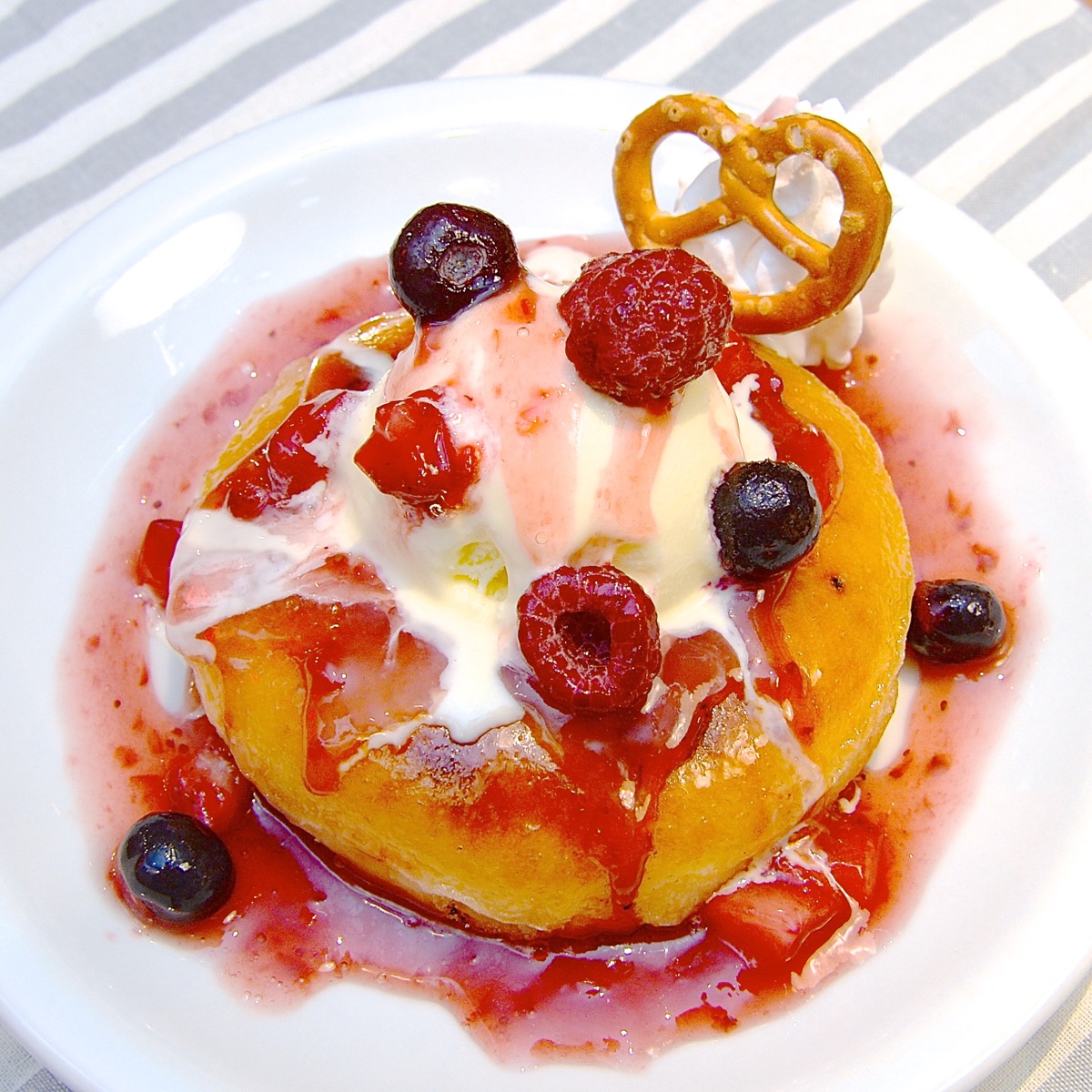 ストロベリー、ラズベリー、ブルーベリーのトリプルベリートッピングは、ジューシーな甘酸っぱさをプラスします。