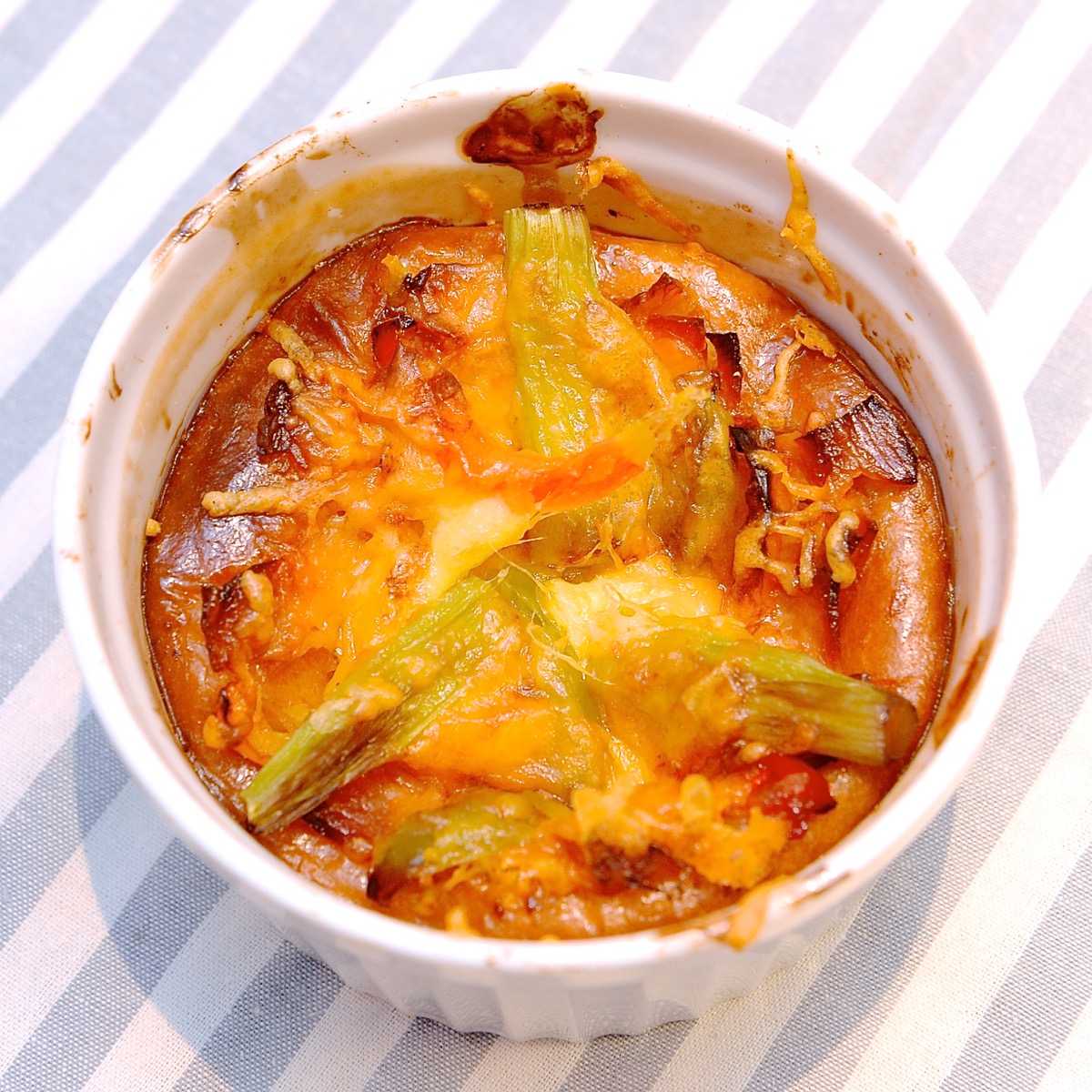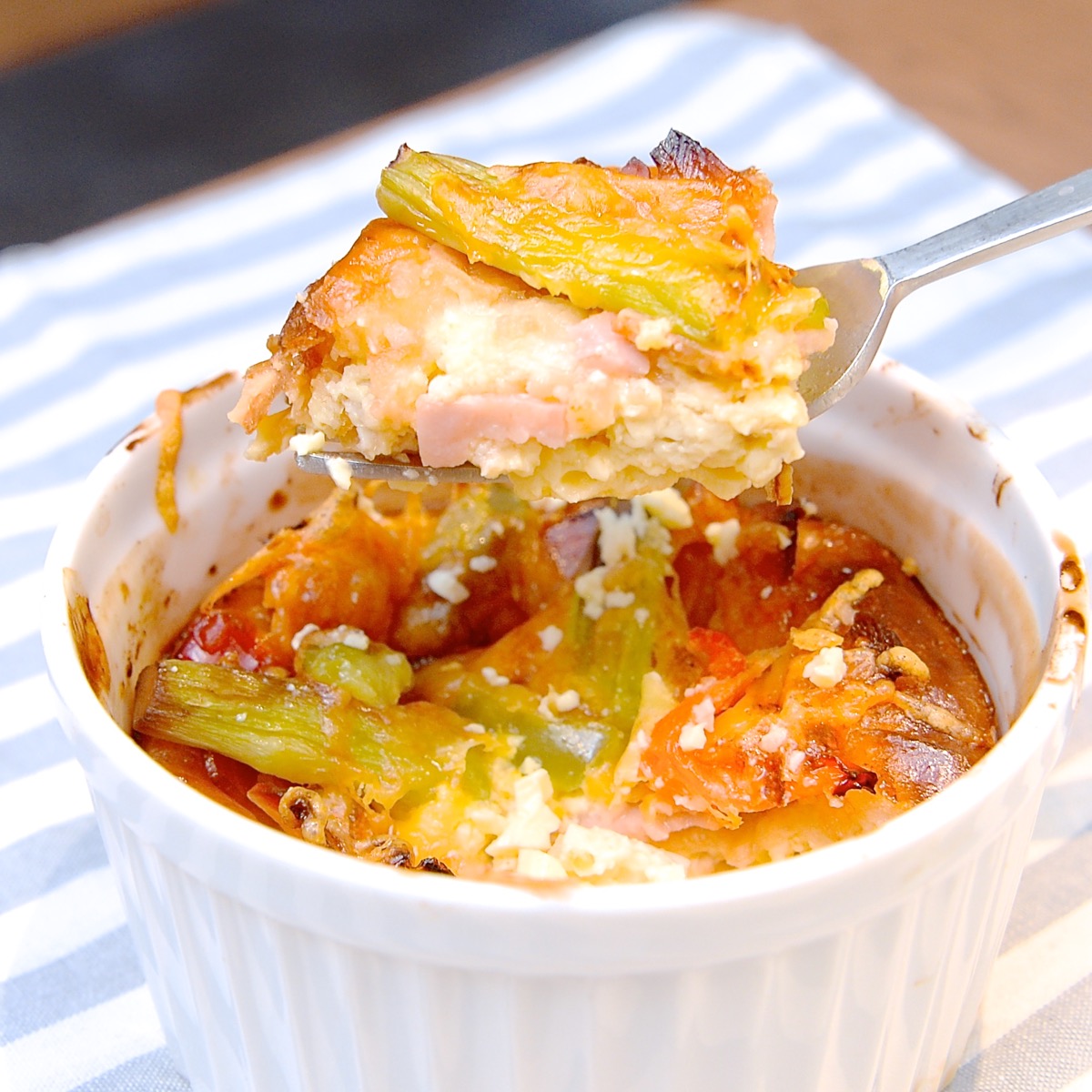 2種類のチーズに香ばしさと、カラフルなパプリカとグリーンアスパラの風味、ベーコンの旨みが楽しめます☆