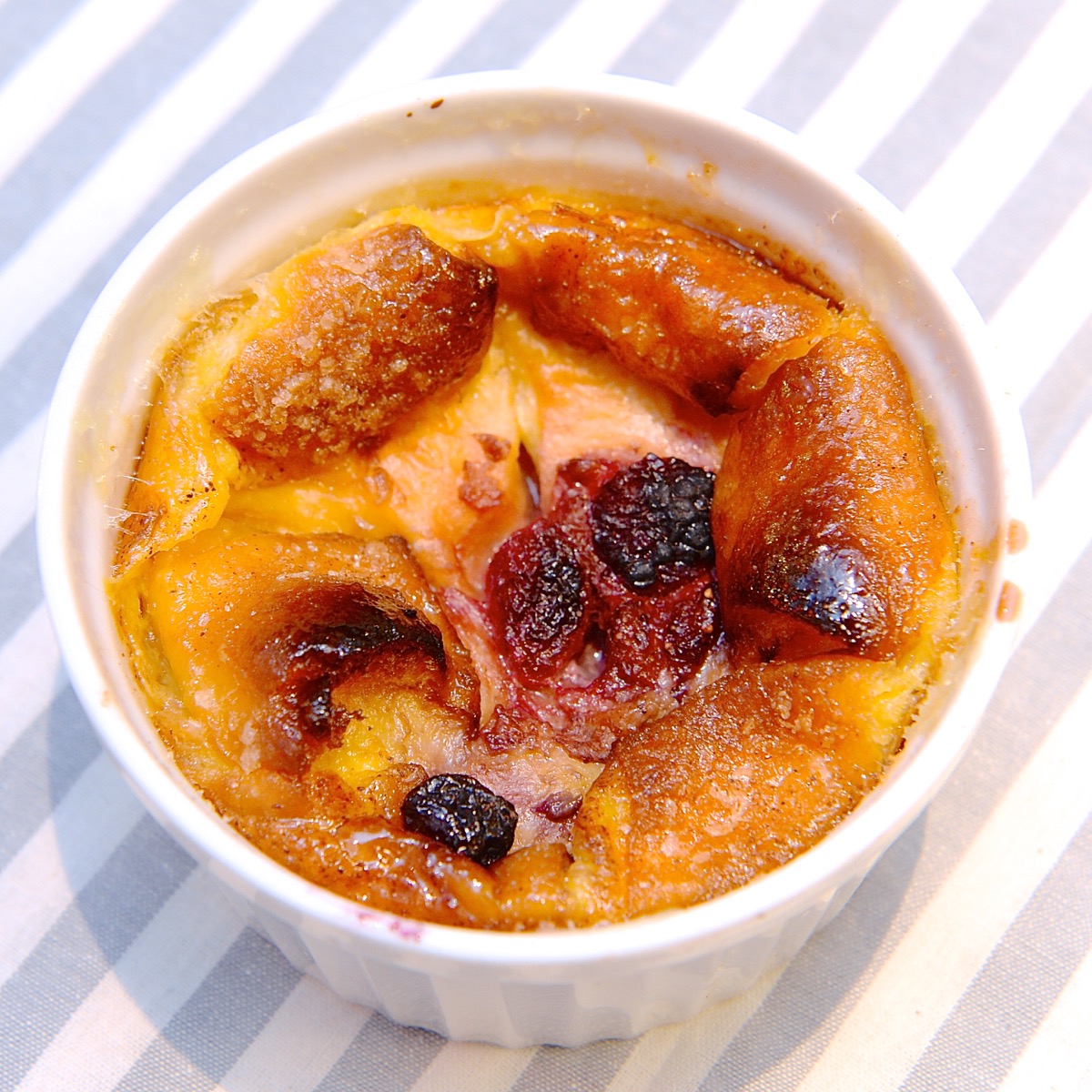 人気ナンバーワンの『オリジナル・グレーズド』になめらかな卵液を流し込んで焼き上げたあたたかなドーナツプディング。