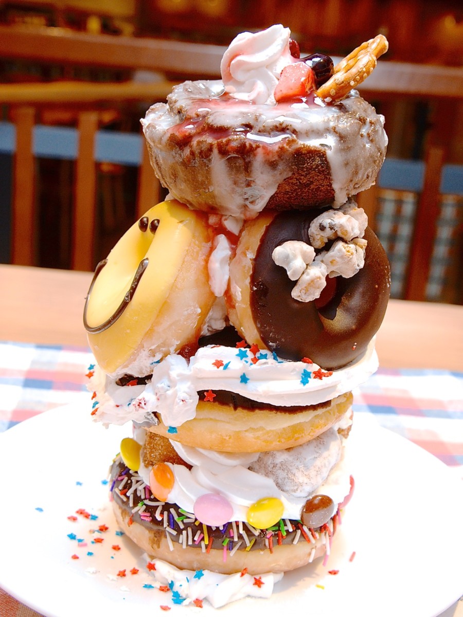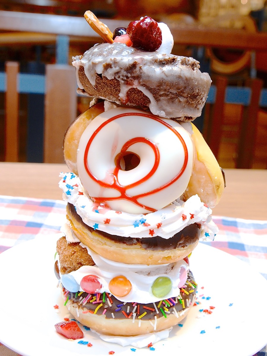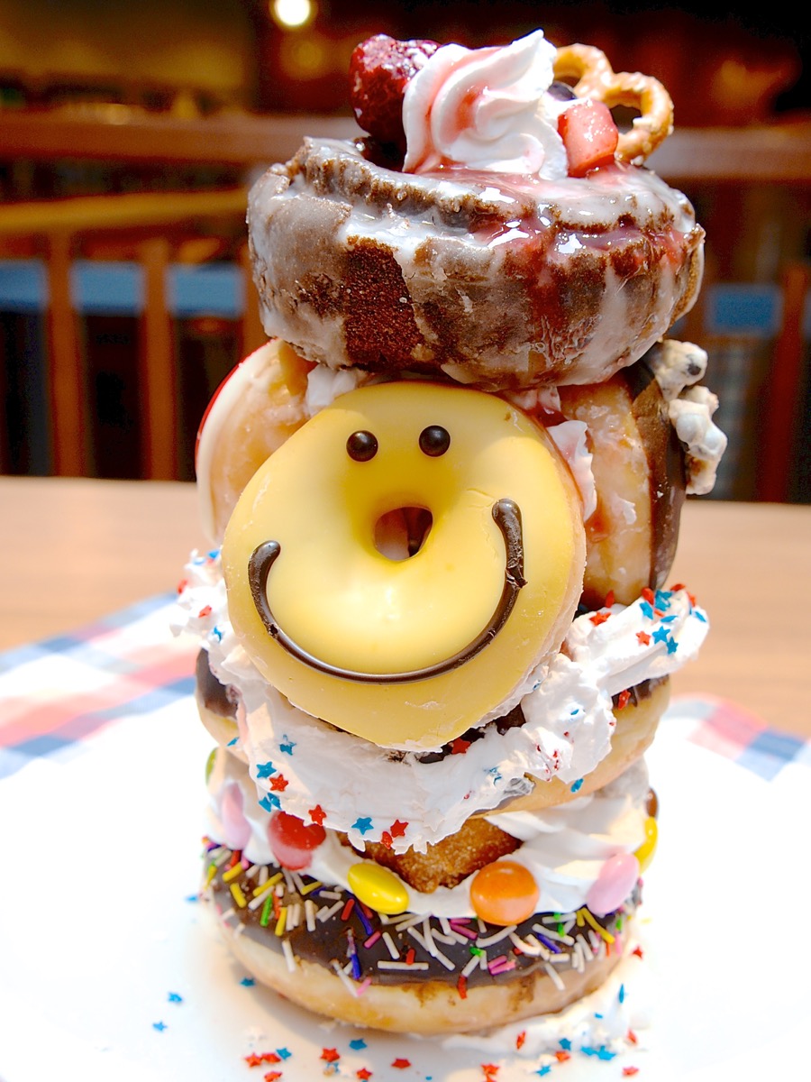 10個のドーナツでできているドーナツタワー。