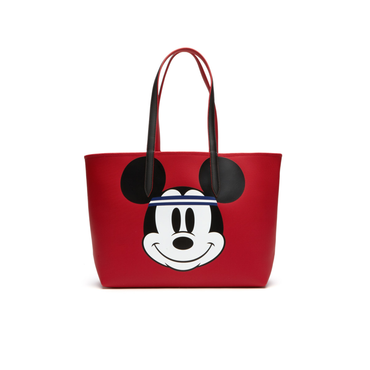 ブルーとレッドの2色で展開するプチピケのリバーシブルトートバッグには、ミッキーマウスとミニーマウスの愛らしい顔がほどこされ、財布やコインパースは、内側にもプリントがほどこされています。