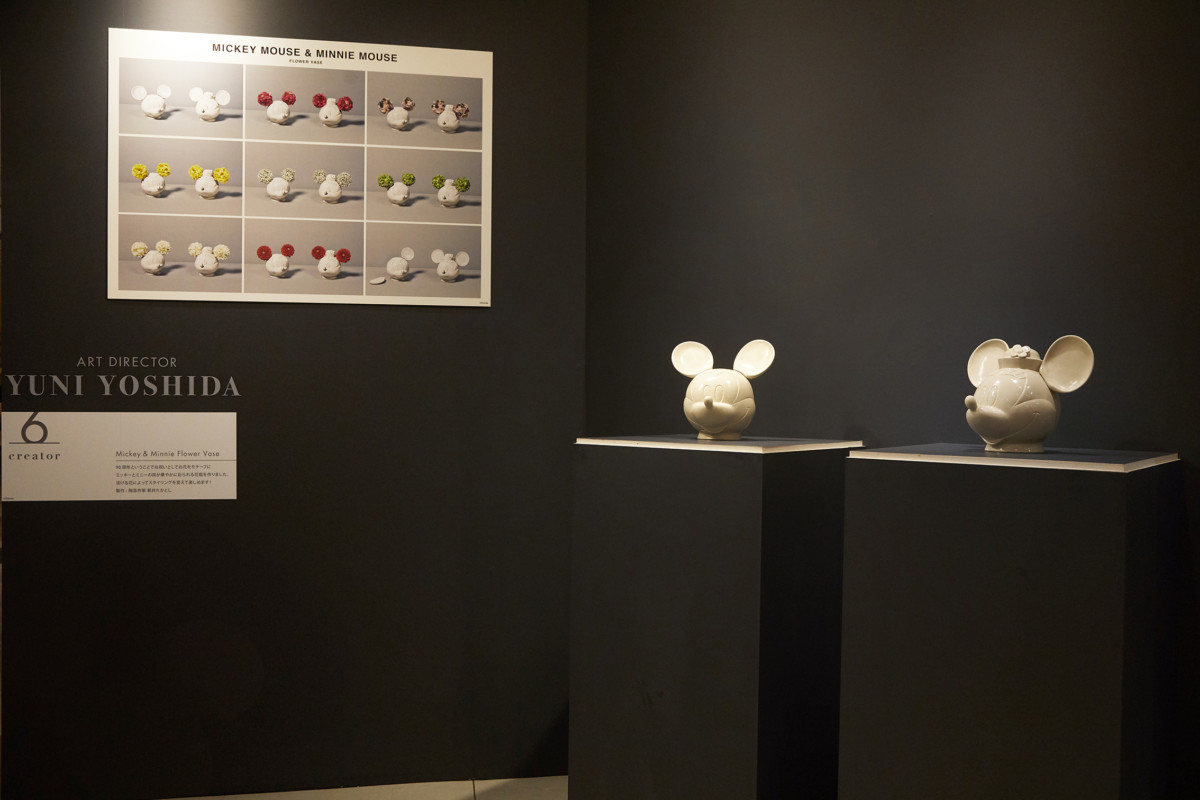 吉田ユニ氏が手がけるミッキーとミニーのフラワーベース(各27,000円)はそれぞれ1点限りのアイテム。