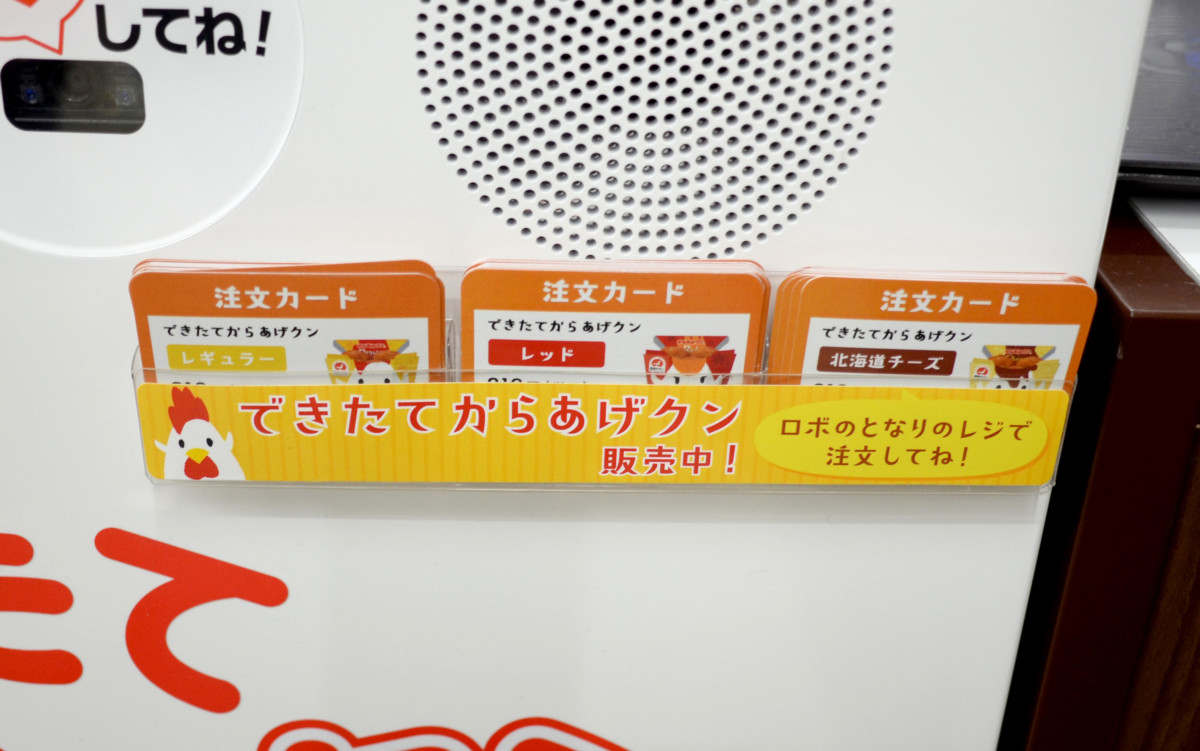 からあげクンロボの前面に置いてある注文カードを取ります。