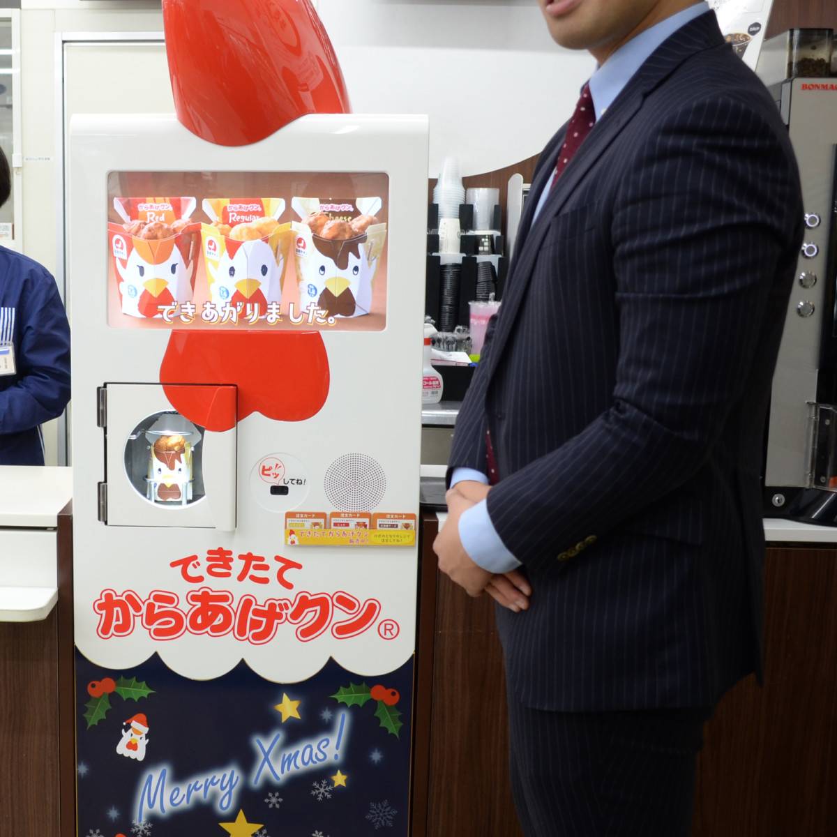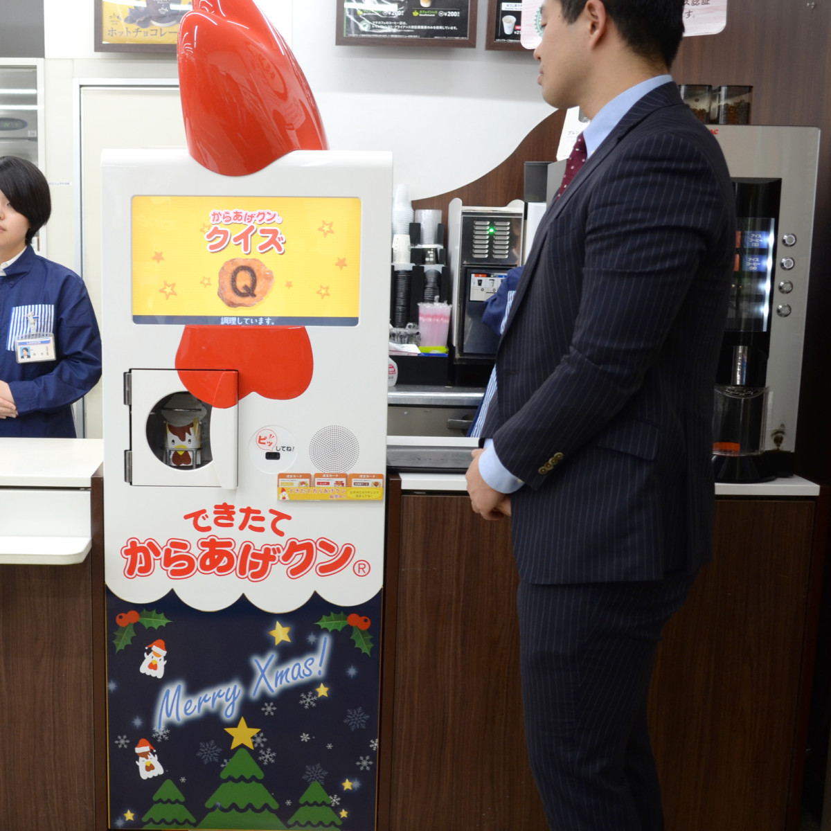今回、クリスマスシーズンに向け、からあげクンを揚げたての状態で提供する「できたてからあげクンロボ」が誕生!