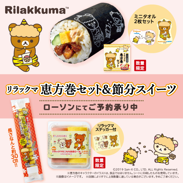 リラックマの「恵方巻セット」と「節分スイーツ」が、ローソンにて店頭予約受付中です。
