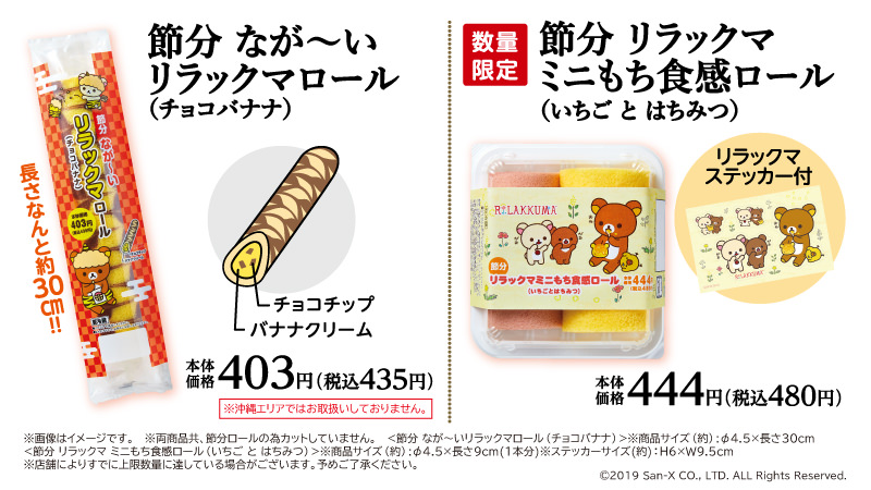 節分スイーツ「節分 なが~いリラックマロール(チョコバナナ)&節分 リラックマ ミニもち食感ロール(いちごとはちみつ)」