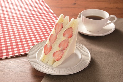 絹のようなふんわり食パンで、広島みはら港町の老舗和菓子屋「八天堂」監修のカスタードクリームと、苺3.5粒分を挟んだサンドイッチ。