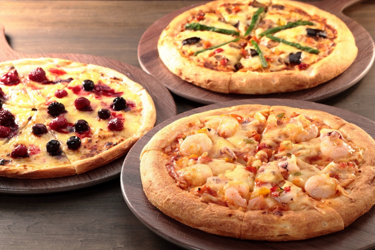 カレーピザ・シーフードピザ・ベリー&カスタードピザ