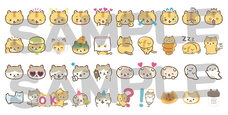 コロニャはパン屋さんのネコなので、パンをモチーフにした楽しい絵文字もあります。