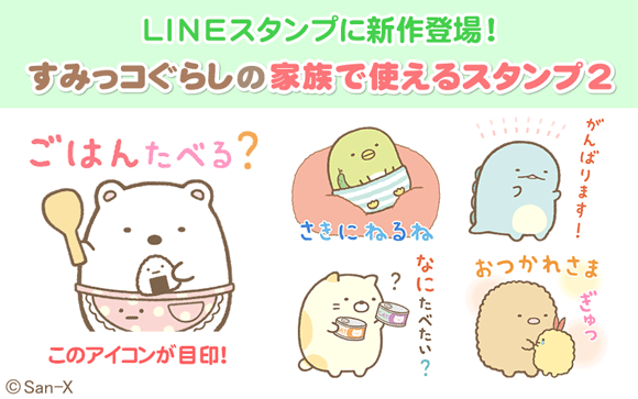 LINEスタンプ「すみっコぐらしの家族で使えるスタンプ2」が、登場しました。