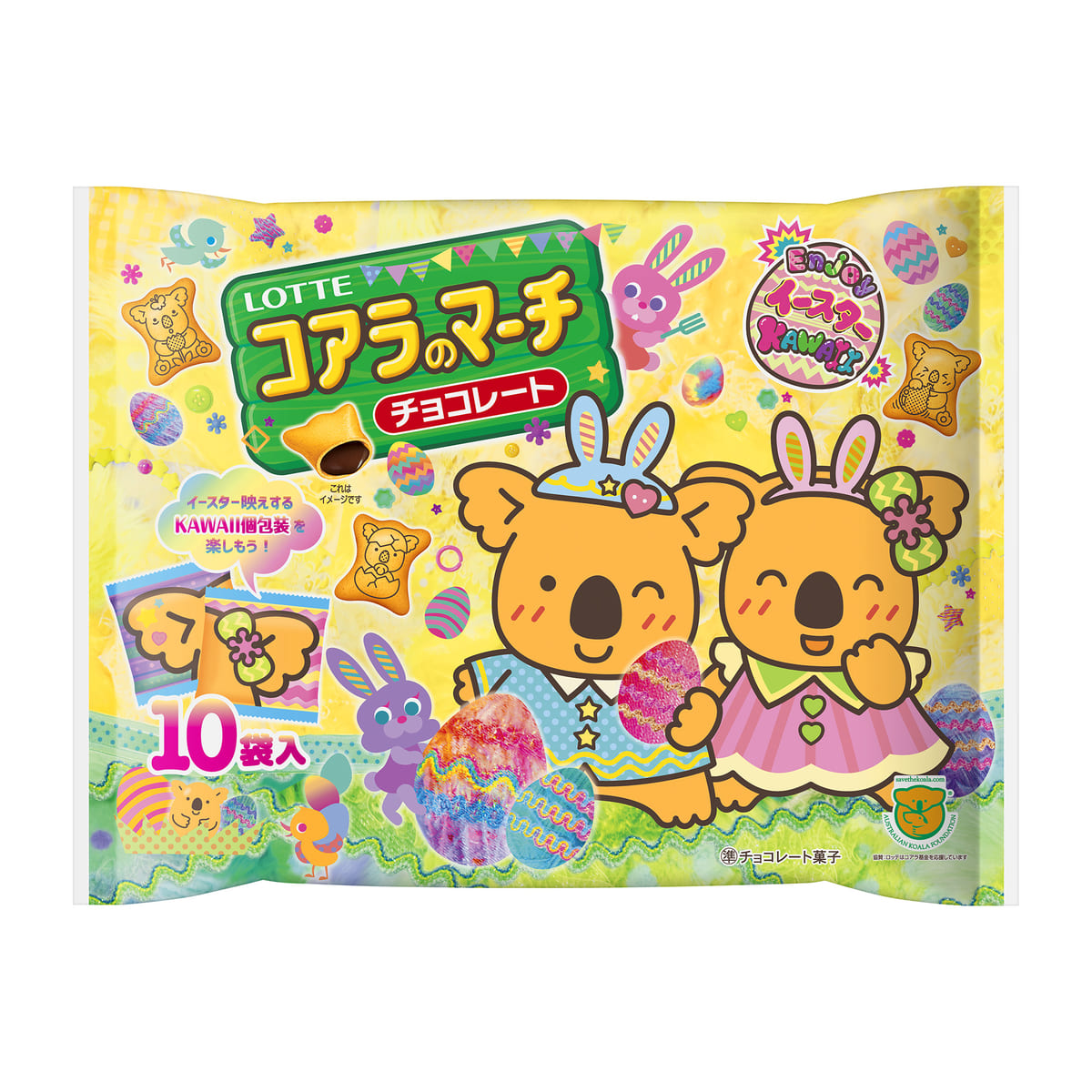 コアラのマーチくんがイースターエッグを抱えた"ラッキーコアラ"の個包装も入っているかも!