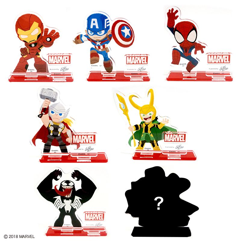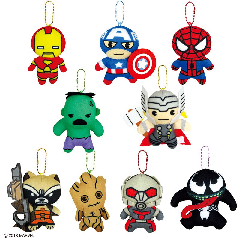 ラインナップ:(左上から)アイアンマン、キャプテン・アメリカ、スパイダーマン、ハルク、ソー、ロケット、グルート、アントマン、ヴェノム(全9種)