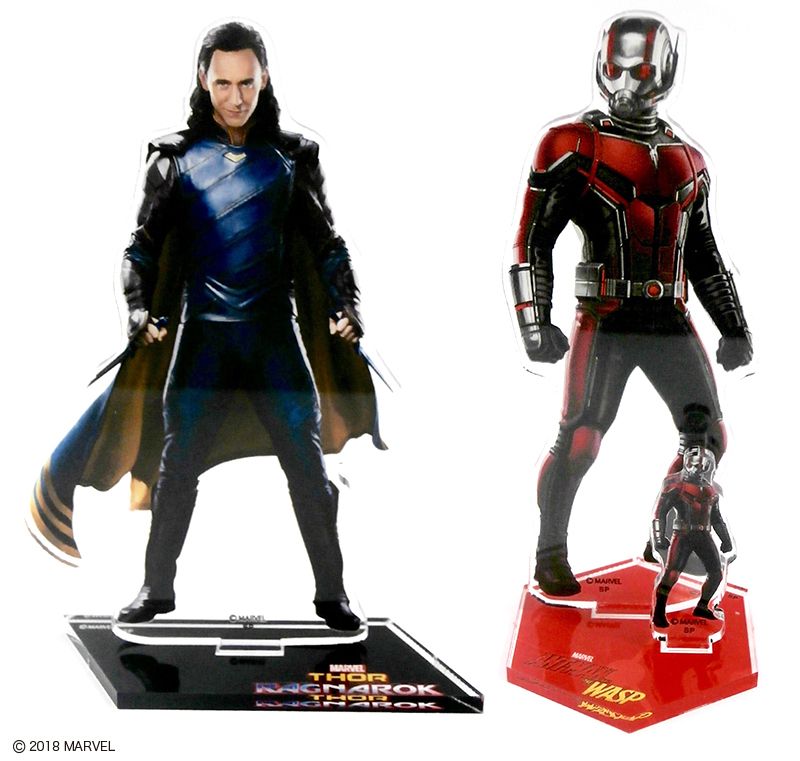 『マイティ・ソー』に登場する悪戯の神「ロキ」と『アントマン』シリーズの主人公「アントマン」デザインのアクリルスタンド。