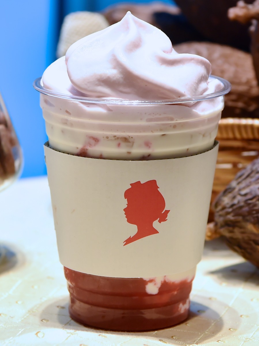 冷たいホワイトチョコレートドリンクに、ラズベリーのムースをたっぷりと乗せたドリンク。
