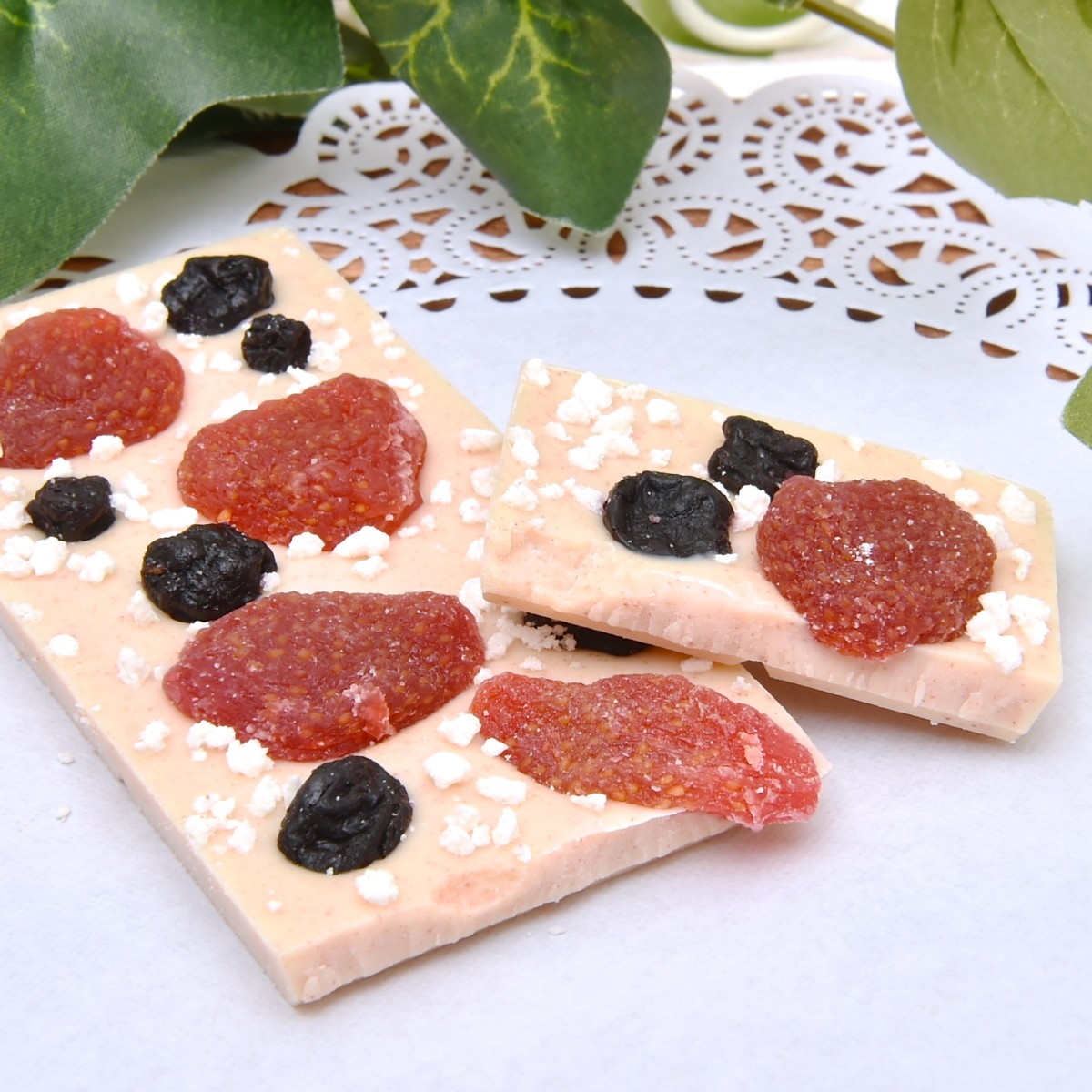 ホワイトチョコレートをベースに、ストロベリーとブルーベリーをトッピングした「ストロベリー&ブルーベリー」