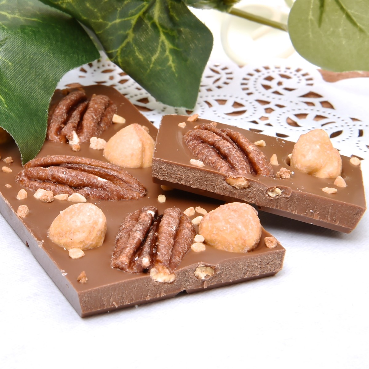 ミルクチョコレートにナッツをたっぷりトッピングした「ピーカンナッツ&ヘーゼルナッツ」
