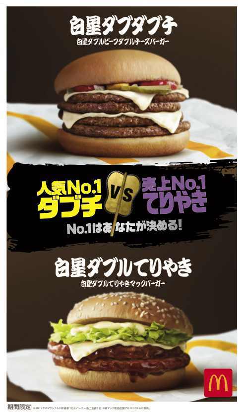 2017年実施の“マクドナルド総選挙”でNo.1に輝いた「ダブルチーズバーガー(通称「ダブチ」)」と、2017年マクドナルドのバーガー類で年間売上金額1位の「てりやきマックバーガー(通称「てりやき」)」