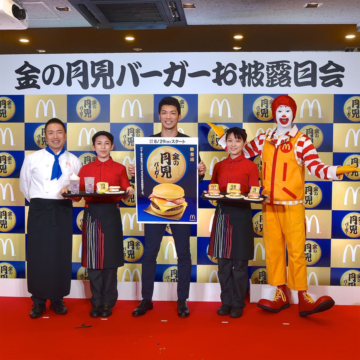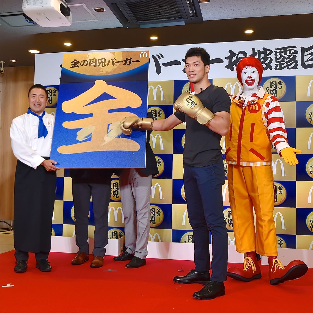 新作となる「金の月見バーガー」のお披露目会にボクシングWBA世界ミドル級王者村田諒太選手が登場!