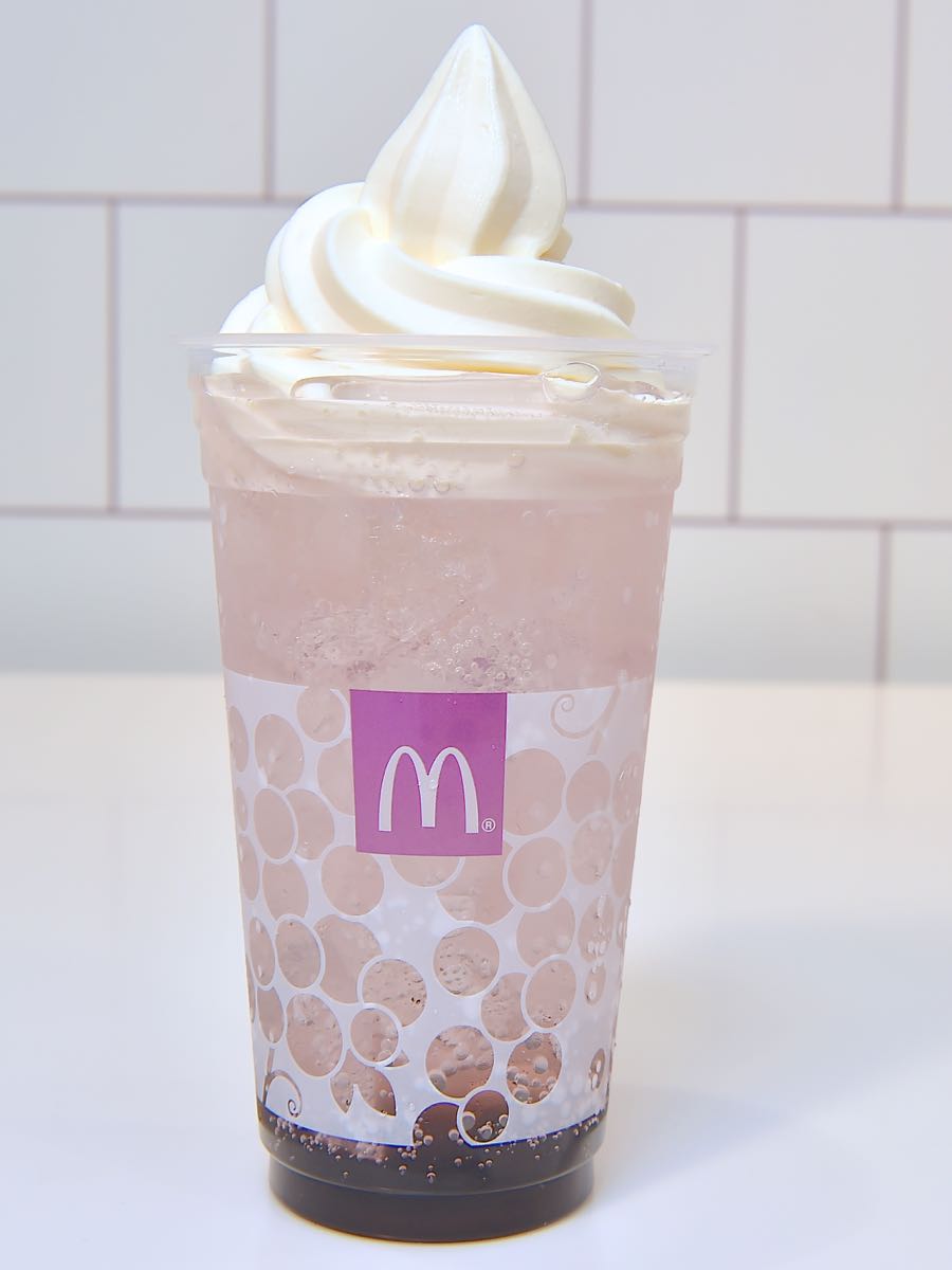 「マックフィズ巨峰(果汁1%)」に、なめらかでコクのあるソフトクリームをトッピングした、リッチな味わいのデザートドリンクです。
