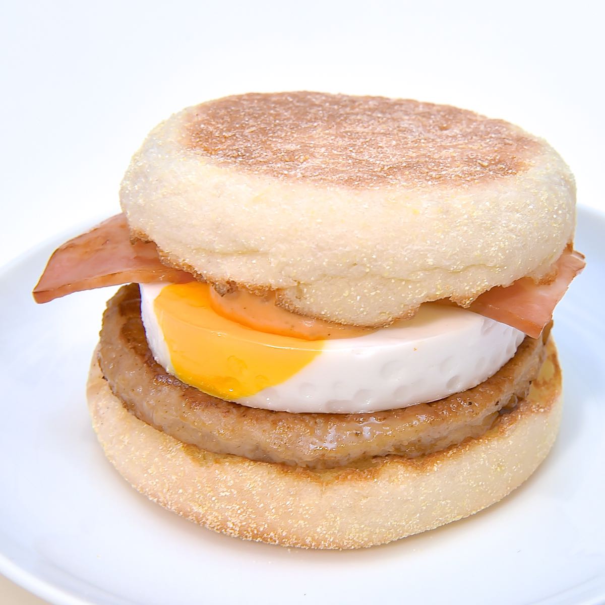 月に見立てたぷるぷるたまご、風味豊かなソーセージパティ、グリルしたスモークベーコンに、クリーミーで濃厚なトマト風味のオーロラソースを加え、焼き立てのイングリッシュマフィンでサンド。