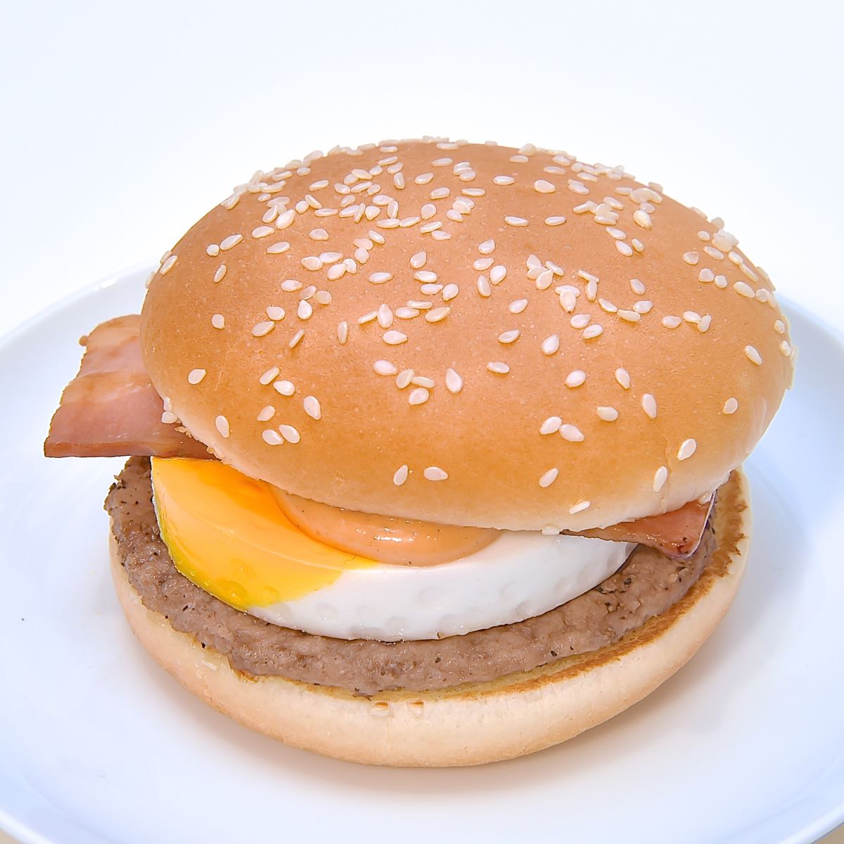 「月見バーガー」は、日本の秋の伝統的習慣「お月見」をイメージして、月に見立てたぷるぷるのたまごとジューシーな100%ビーフパティ、グリルしたスモークベーコンの組み合わせで、1991年より毎年秋に登場している人気商品!