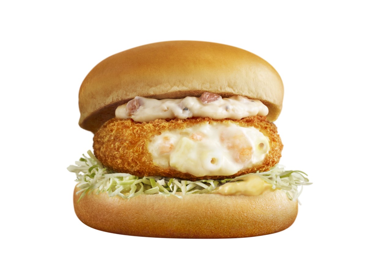 香り豊かなチーズフォンデュソースとグラタンコロッケ、ふわふわの蒸しバンズがぴったりの、寒い冬に食べたいバーガーです。