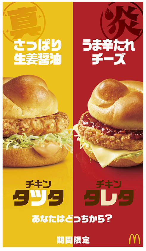 マクドナルドから、2018年に初のリニューアルを行った人気メニュー「チキンタツタ」に加え、うま辛たれとチーズでいただく「チキンタレタ」の 2種類のバーガーが登場!